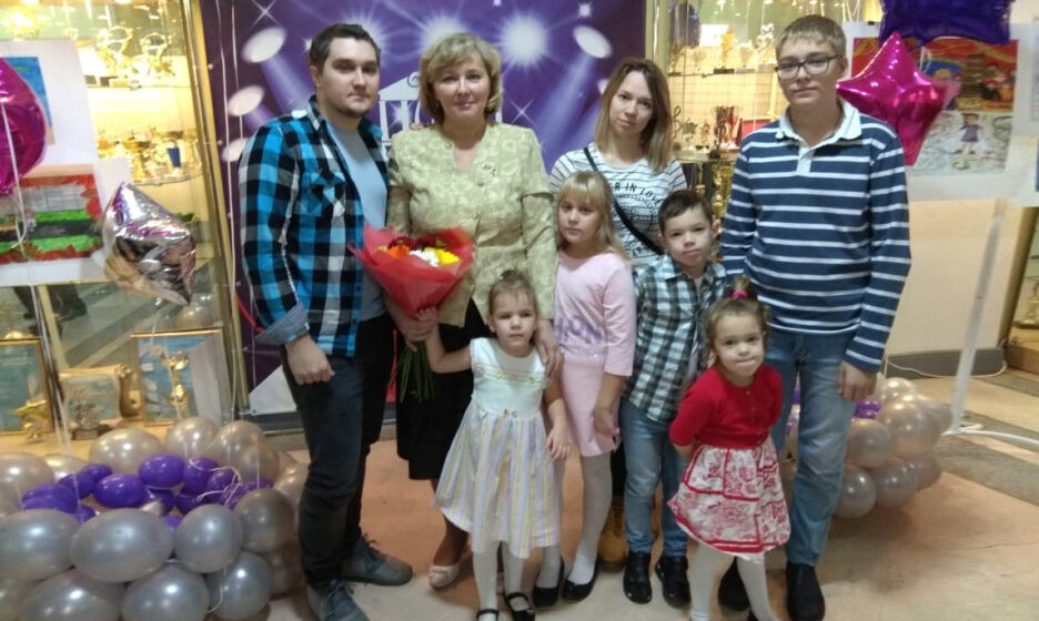 Ольга с детьми и внуками на церемонии награждения многодетных семей в Ломоносовском доме культуры