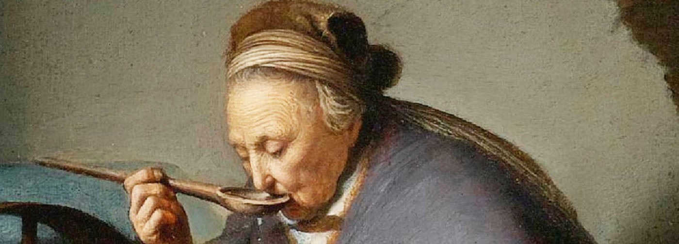 Художник Герард Доу, «Старушка ест овсяную кашу» (фрагмент)