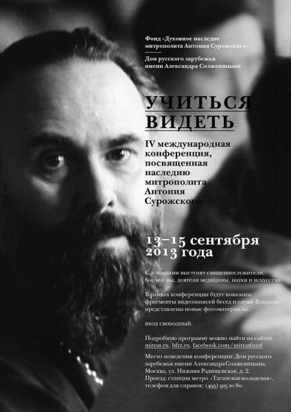 13–15 сентября 2013 года фонд «Духовное наследие митрополита Антония Сурожского» и Дом русского зарубежья им. А. Солженицына провели IV международную конференцию «Учиться видеть», посвященную наследию митрополита Антония Сурожского. Конференция была приурочена к десятой годовщине перехода Владыки в вечную жизнь. Предлагаем вашему вниманию доклад на конференции Анны Шмаиной-Великановой, доктора культурологии, доцента Центра изучения религий РГГУ.