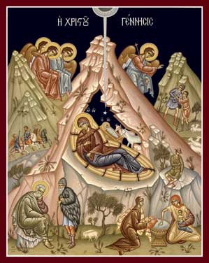 «Языки (народы) же Богу наследие Сын приносить (25 декабря, тропарь пятой песни канона утрени). «Путь изобретя всякаго художества (то есть Бог изыскал художественный, превосходный путь спасения) по сих (после этого совета, «изобретения») человеком уподобится, в плоть облекся (облекшись), приступен мне быв, Иже естеством не приступивый» (21 декабря, стихира на «Гocnoдu воззвах»).