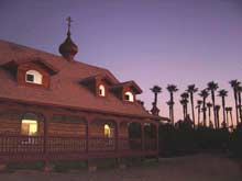 Когда мы уже начали сомневаться, на заблудились ли, то неожиданно увидели небольшой указатель на греческом — «Антоний». И действительно, через несколько минут езды по грунтовке, свернув налево, мы оказались перед главным входом. От света фар в темноту врассыпную бросились зайцы. Справа виднелась автостоянка, арка входа, дорожка, освещенный фонтан, огромные пальмы. Все остальное скрадывалось темнотой ночи. Не заглушая мотора и не выключая фар, мы вышли из машины. Ни ворот, ни сторожа — ни души! Чудно. В Америке так не живут — здесь каждый охраняет свою собственность и опасается маньяков. Пораженный покоем этого места, я окликнул своих друзей: «Слушайте, да это же кусочек рая на земле!» …Прошло двенадцати месяцев, настал Великий пост 2000 года. Я получил трехнедельный отпуск, чтобы оправиться от непонятной болезни, терзавшей меня уже полтора года. Хорошее лечение в дорогих клиниках не помогало. Архимандрит Христодолос, монах с острова Родос, мой духовник, одобрил мое решение поехать на несколько дней в Аризону. Он позвонил в монастырь, поговорил с настоятелем благословил меня в дорогу — и все было готово к первому паломничеству в моей жизни