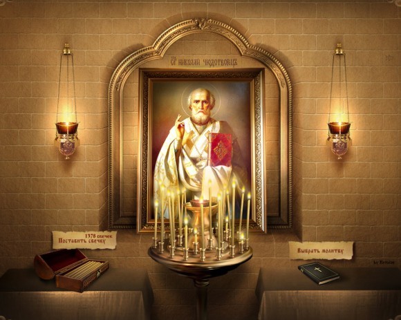 В часовне Спасителя 2 подсвечника, а вот у Николая Угодника аж целых 17. Интересно, в каком реальном храме разработчик Капралов Денис, имя которого красуется рядом со ссылкой на сайт разработчика в правом нижнем углу часовни, видел 17 подсвечников вокруг одной иконы? Не в каждом храме 17 подсвечников бывает, а тут в часовне все возле иконы Николая Чудотворца. Вот ведь как сильно может виртуальный мир от реального отличаться! Но если внимательно присмотреться, то не так уж и сильно отличается. Сколько раз на дню приходится слышать вопросы типа: «А какому святому нужно поставить свечки, чтобы… ?»