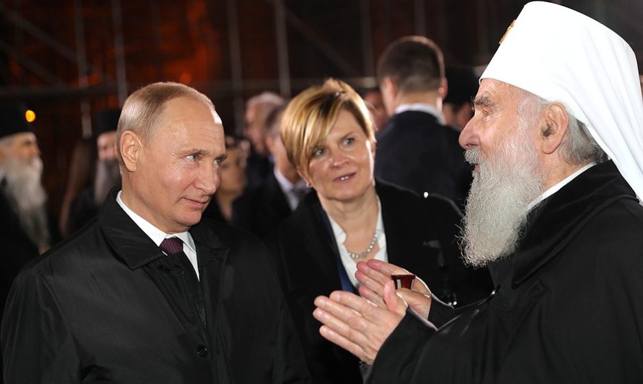 Владимир Путин посетил кафедральный собор Белграда в ходе своего официального визита в Сербию. Вместе с Александром Вучичем глава России осмотрел внутреннее убранство собора, главный престол которого освящён в честь почитаемого святого, первого сербского архиепископа Саввы. Лидеров двух стран сопровождали Патриарх Сербский Ириней и настоятель храма Святого Саввы, епископ Ремесианский Стефан.