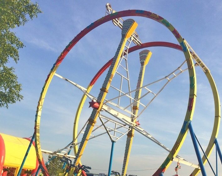 Аттракцион «360 градусов» остановился в пиковой точке, так что люди повисли вниз головой на высоте 10 метров – от падения их удерживали только ремни безопасности. Подбежавшие на помощь прохожие смогли вместе с оператором аттракциона раскачать конструкцию, которая снова пришла в движение.