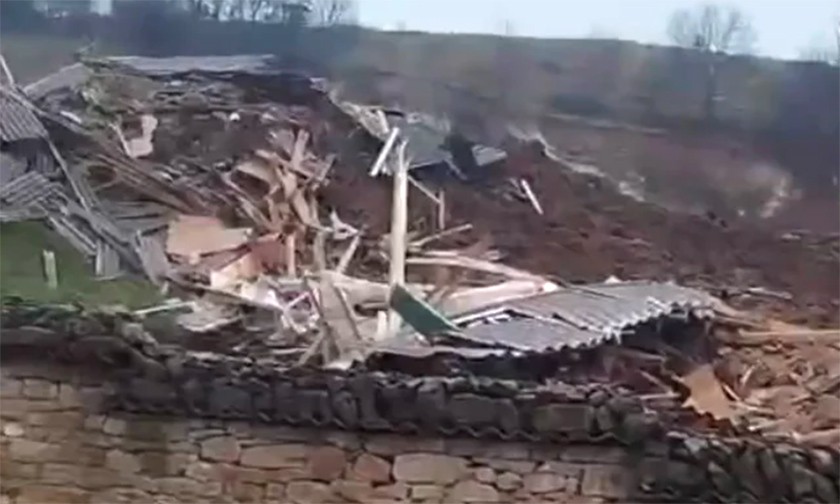 Поток воды размыл фундамент здания, он рухнули на глазах у очевидцев.
