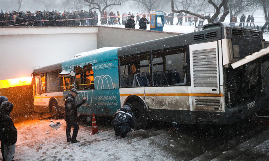 Автобус, следовавший из Москвы в «Сколково» врезался в подземный переход возле станции метро «Славянский бульвар» 25 декабря 2017 года. В результате аварии погибли 4 человека, еще 11 получили травмы.