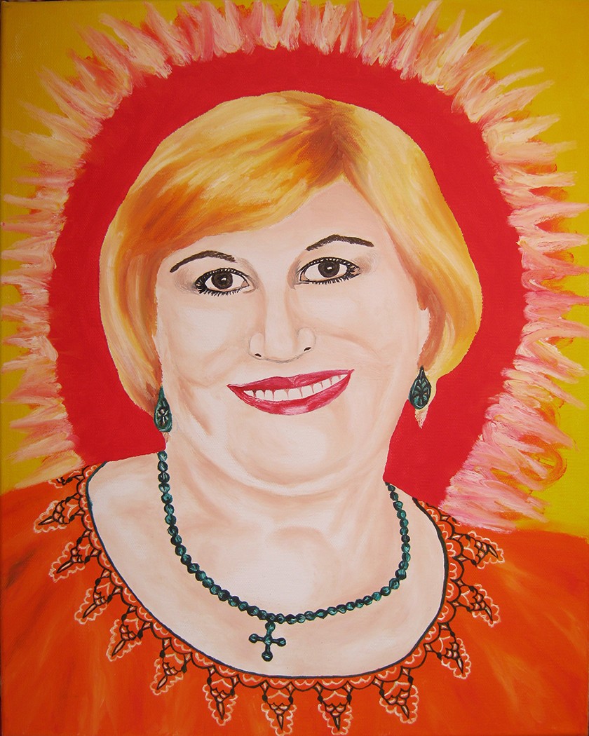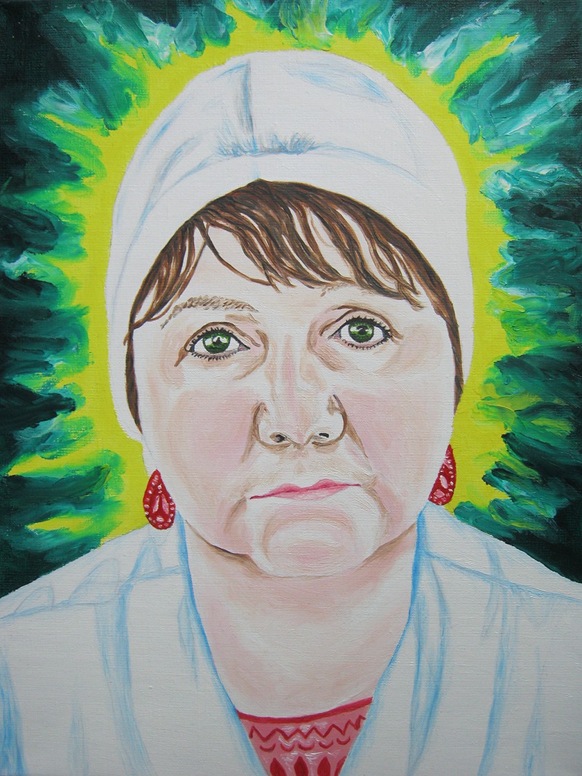 Среди работ есть портрет медсестры Натальи Скляровой из Шахт, которая умерла в октябре прошлого года. Она 50 лет проработала в отделении функциональной диагностики БСМП им.Ленина. Ее дочь мне писала и звонила. Она говорит, что ореол — сияние вокруг головы, которое я изобразила, очень правильно отражает образ ее мамы, она такой ее и видела — светлым человеком, и все запомнили ее именно такой.