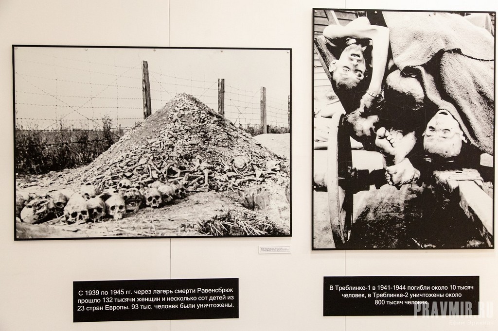 С 1939 по 1945 гг. через лагерь смерти Равенсбрюк прошло 132 тысячи женщин и несколько сот детей из 23 стран Европы. 93 тысячи человек были уничтожены. В Треблинке-1 в 1941-1944 погибли около 10 тысяч человек, в Треблинке-2 уничтожены около 800 тысяч человек.