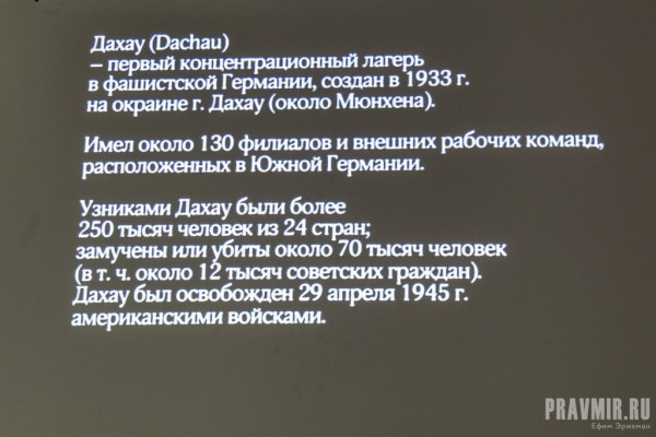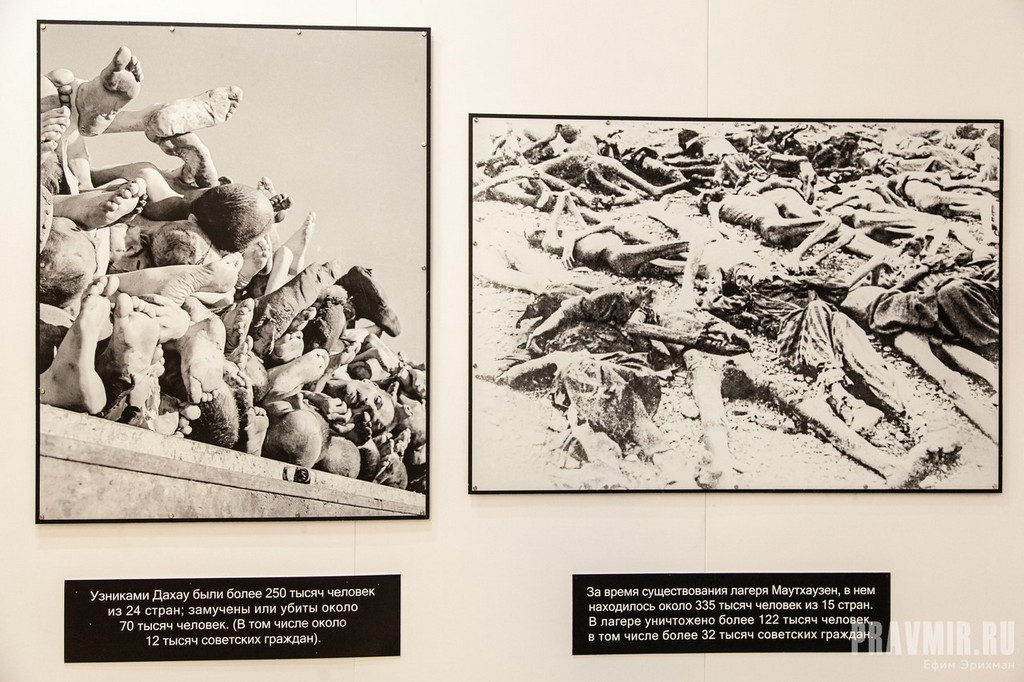 Узниками Дахау были около 250 тысяч человек из 24 стран; замучены или убиты около 70 тысяч человек. (В том числе около 12 тысяч советских граждан). За время существования лагеря Маутхаузен, в нем находилось око 335 тысяч человек из 15 стран. В лагере уничтожено более 122 тысяч человек. В том числе более 32 тысяч советских граждан.