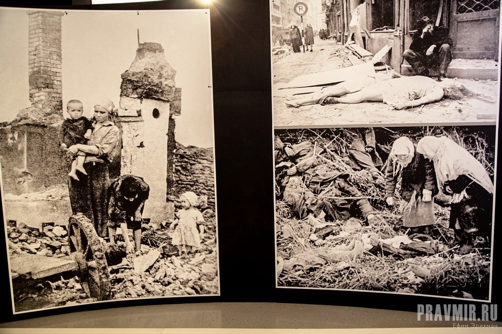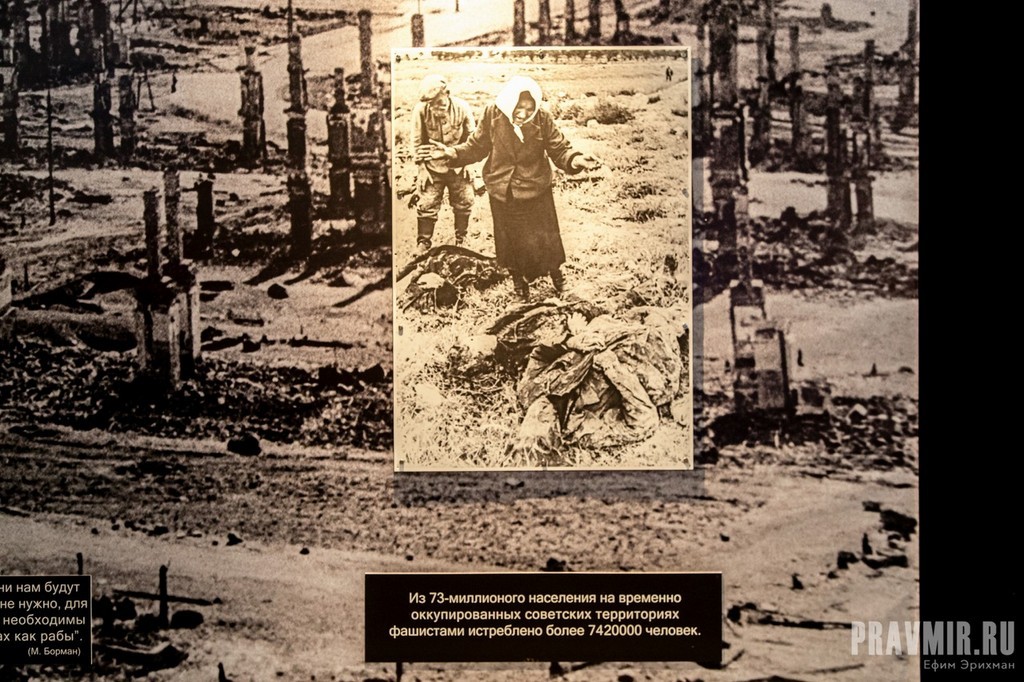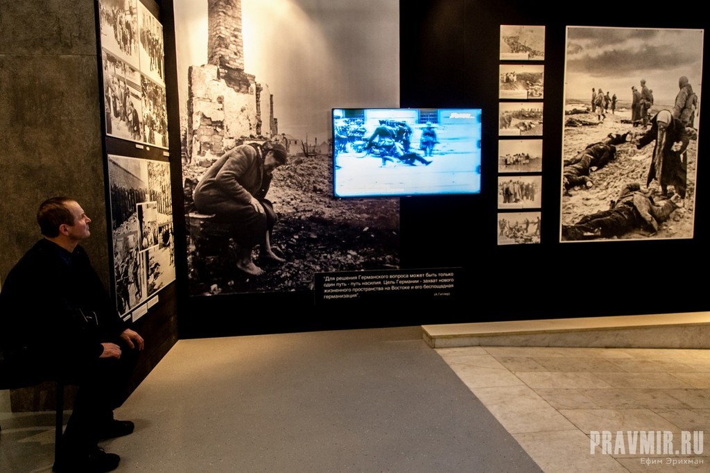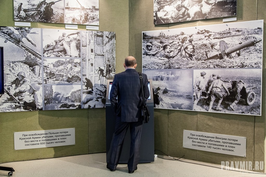 «Уникальность этой выставки заключается в том, что те фотографии, те кадры кинохроники, которые вы здесь увидите, на 90% никогда не показывались. Не показывались по этическим соображениям. Сейчас время показать людям, что такое победа над нацизмом на самом деле. Один зал расскажет, что готовили нам фашисты в случае победы, порабощения Советского Союза. Второй зал рассказывает, как Советская армия освобождала Европу», — сообщил председатель РВИО, Министр культуры РФ Владимир Мединский.