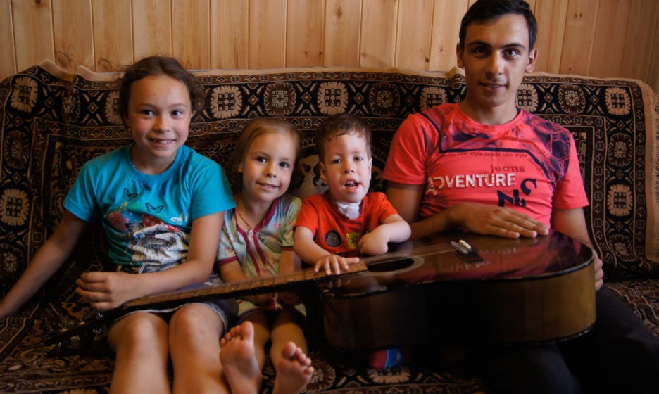 И, в общем-то, этого вполне достаточно, чтобы понять все про семью Кобелевых из города Каргат Новосибирской области. Когда врачи сказали, что Тихон не выживет, они просто не поверили и боролись за него. Все вместе — папа Александр, мама Людмила и старшие дети: Денис, Александра, Серафима.