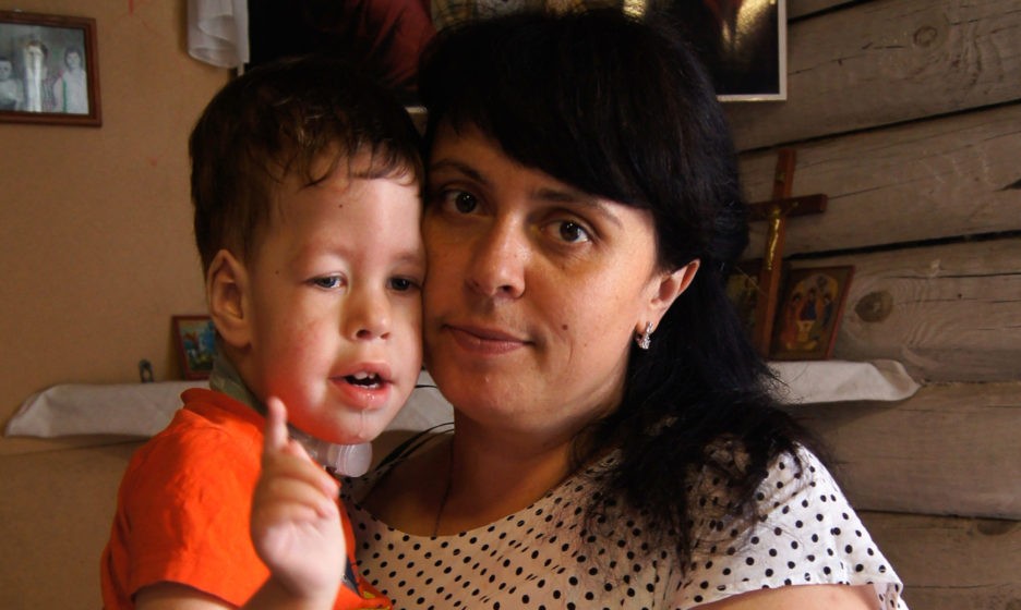 Через некоторое время Тихон стал на настойчивый зов мамы как-то реагировать. Сначала приоткрыл глаза, потом стал следить, что мама делает, а вскоре начал требовательно плакать, стоило Людмиле отойти. В общем, постепенно входил в жизнь. Тогда мальчику поставили трахеостому — искусственное дыхательное горло, трубку в трахее — и выписали из реанимации в паллиативное отделение. Здесь Тихон с мамой провели еще два с половиной месяца.