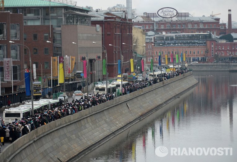 Чтобы встать в хвост очереди, надо приезжать в район станции метро «Фрунзенская», о чем паломникам сообщают в подземке по громкой связи.