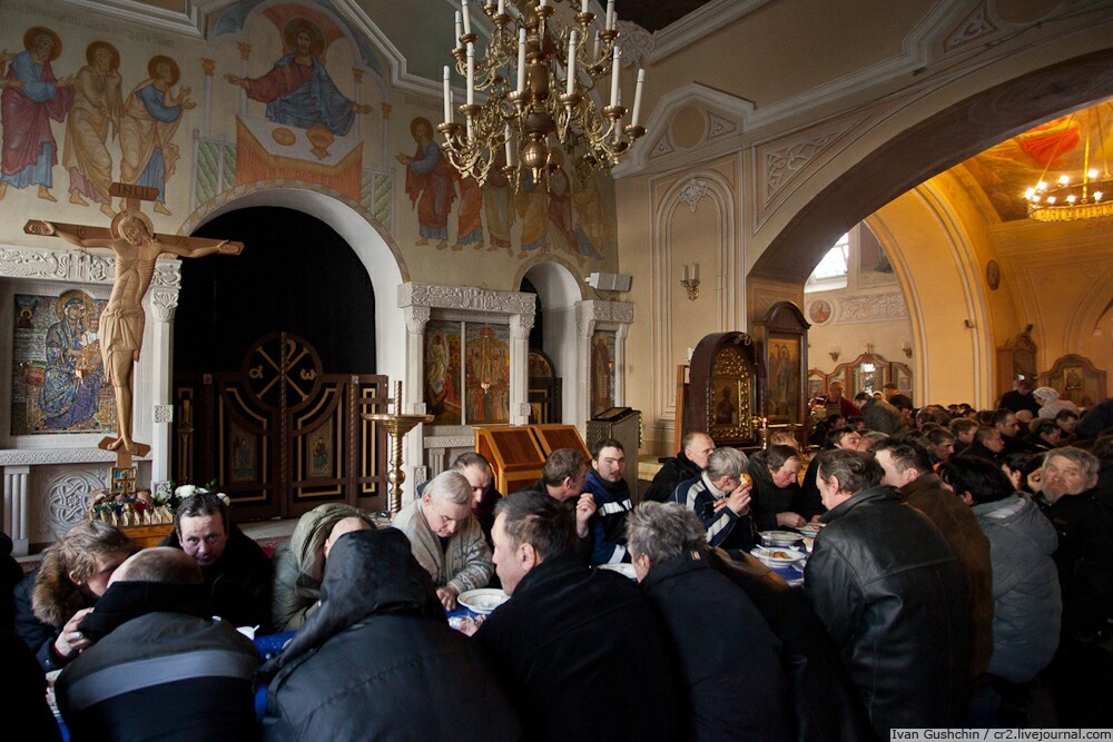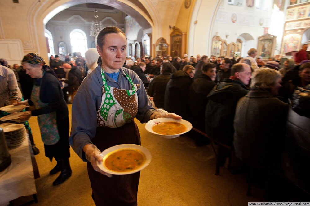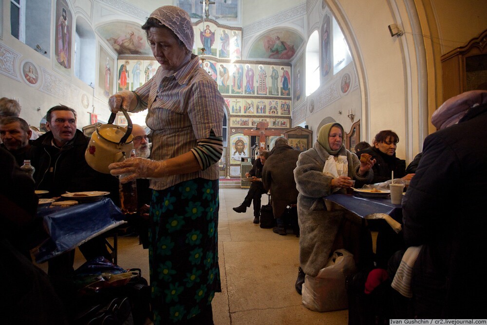 Один из авторов Живого журнала CR2 Иван Гущин побывал в храме Косьмы и Дамиана в Шубине на обеде для бездомных и поделился в блоге своими впечатлениями.
