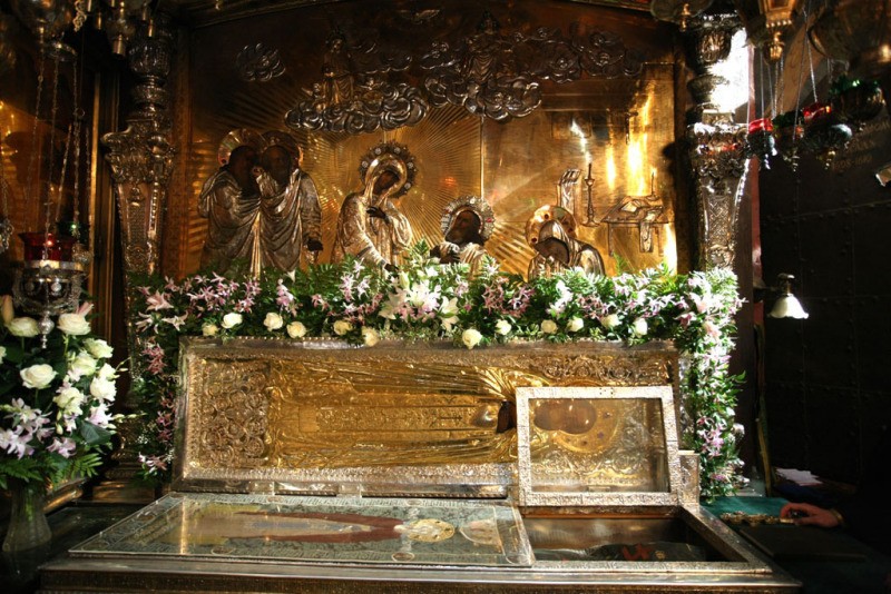 Сейчас здесь хранятся величайшие православные святыни: мощи трех настоятелей монастыря: святителя Иоасафа, митрополита Московского, преподобного Дионисия Радонежского и святителя Серапиона, архиепископа Новгородского. А еще там лежит часть пояса Пресвятой Богородицы! Десница первомученика архидиакона Стефана, крест с частицей Крови Господней, частица мощей великомученика и целителя Пантелеимона, мощи святителя Николая, Марии-Магдалины, крест-мощевик преподобного Сергия и многие и многие другие святыни!