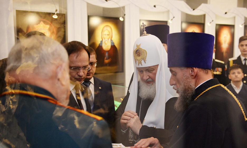 В церемонии открытия выставки, которая прошла 23 февраля, приняли участие министр культуры России Владимир Мединский и Патриарх Московский и всея Руси Кирилл.