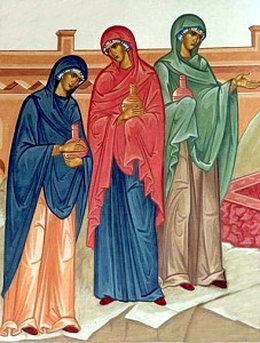 Ранним утром, еще до рассвета, жены-мироносицы пришли на гроб, и ангел, сияющий светом Воскресения, сказал им, что напрасно искать среди мертвых живого, напрасно среди людей искать Бога, восставшего из гроба Своего. А вокруг все еще была предрассветная тьма, и однако этот свет Воскресения Христова, этот начинающийся день говорили о том, что тьма побеждена, побеждена окончательно и бесповоротно. Можно было тогда уже предвкушать смысл слов одного из древних пророков: ночь приходит к концу, уже светает… И этот день светит с тех пор. Жены-мироносицы пришли, когда прозвучала только первая весть о Воскресении Христовом, когда только ангелы на небесах, только спасенные из тьмы ада люди ее воспевали — а с тех пор сколько тысяч сердец загорелось этой радостью и этим светом, сколько мыслей этим сиянием просвещено!