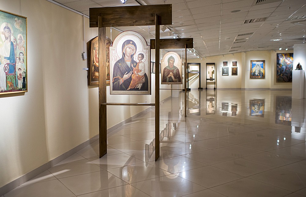 Современные художники вольны избирать религиозные сюжеты, оформлять храмы, писать картины, проникнутые ощущением присутствия божественной силы. Иконы, экспрессионистические, импрессионистические, реалистические и „наивные“ картины — представленные на выставке экспонаты подводят нас к двум вопросам: с одной стороны, как можно создавать искусство в рамках канона, и, с другой стороны, какой художественный язык наиболее понятен современному верующему?» — говорится на сайте РОСИЗО.
