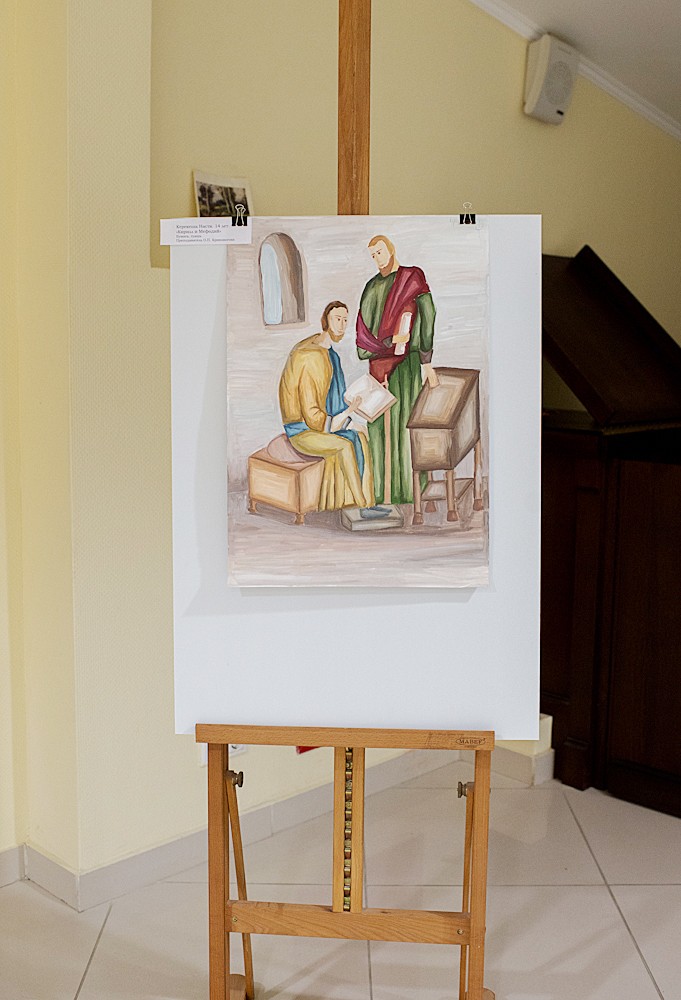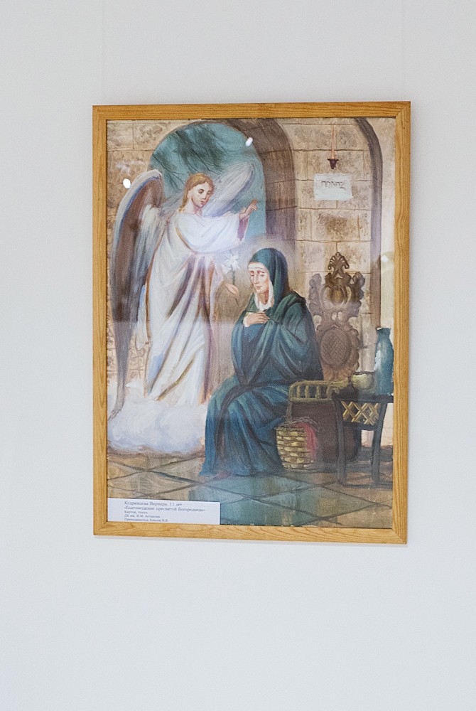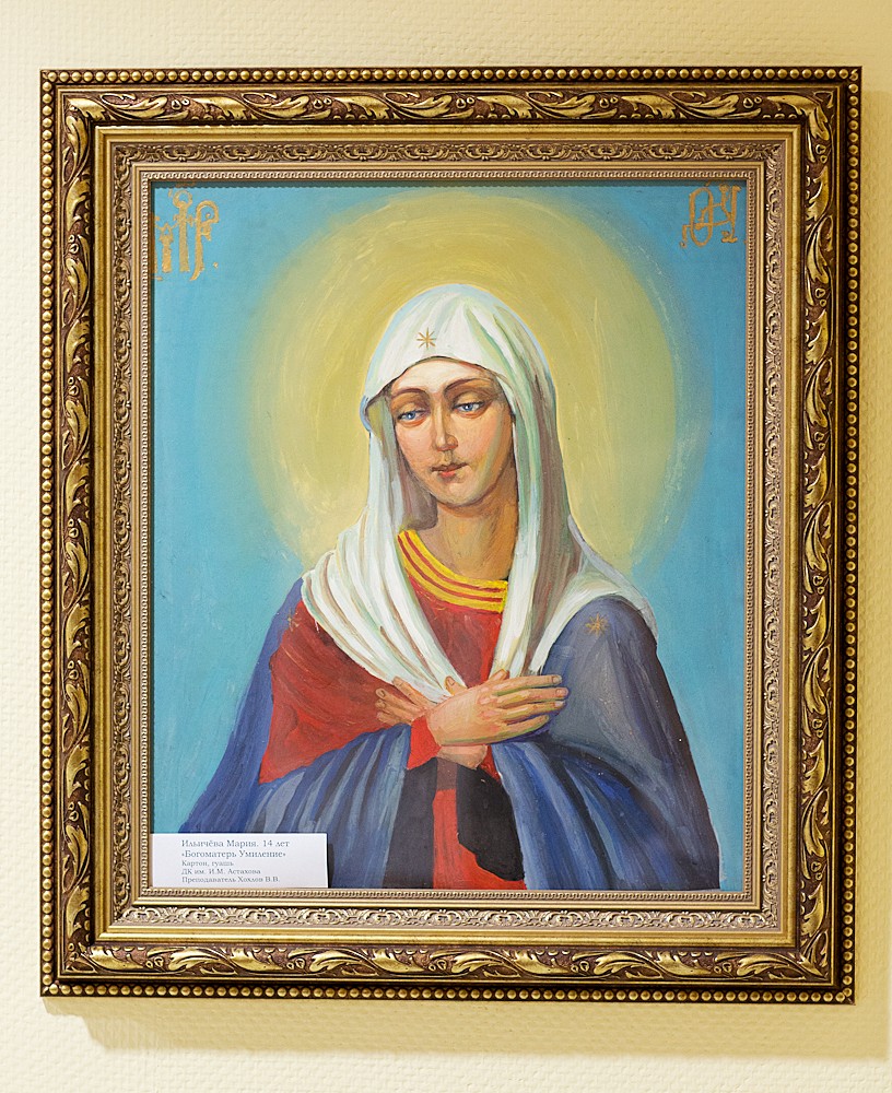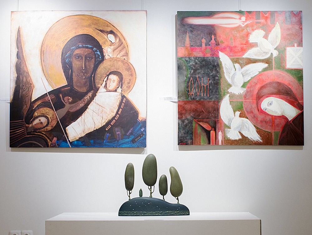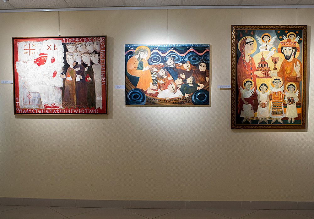 И. Старженецкая «Триптих» Е. Черкасова «Молитва» Картины Е. Черкасовой А. Смирнов «Борис и Глеб» А. Тутунов «Видение Богородицы Страждущей» Работы А. Тихомирова Работы И. Старженецкой Работы И. Зарона Фрагмент скульптурной композиции И. Зарон. «Рождество Богородицы» и «Рождество Христово» Е. Коронцевич. Диптих «Апокалипсис» А. Смирнов. Никола Мокрый Ю. Попков «Преподобный Александр Свирский» И. Старженецкая «Воин» А. Стрелкова «Рождество» Н. Нестерова. «Пир Ирода» Н. Нестерова «Юдифь» М. Дронов «Ангел» В. Калинин «Бегство в Египет» Е. Болотских «Богоматерь с защитником» и «Красная площадь» В. Архаров (Фредынский) «Троице-Сергиева Лавра» О. Кривоногова «Памяти Зосимы и Савватия – основателей Соловецкого монастыря посвящается» Работы А. Харитонова А. Смирнов «Андрей Рублев» И. Яценко «Исповедь» и Е. Степура «Вербное воскресенье» М. Дронов «Святой Петр» С. Бычков «Отпевание» Г. Коржев «Блудный сын» А. Смирнов «Иоанн Креститель» М. Ильичева, 14 лет «Богоматерь Умиление» П. Лозовой, 6 лет «Весна» и Д. Халилуллина, 8 лет «Канавка в Дивеевском монастыре» Детские работы В. Кудрявцева, 11лет «Благовещение Пресвятой Богородицы» Н. Керекеша, 14 лет «Кирилл и Мефодий» Скульптура «Пастырь добрый»
