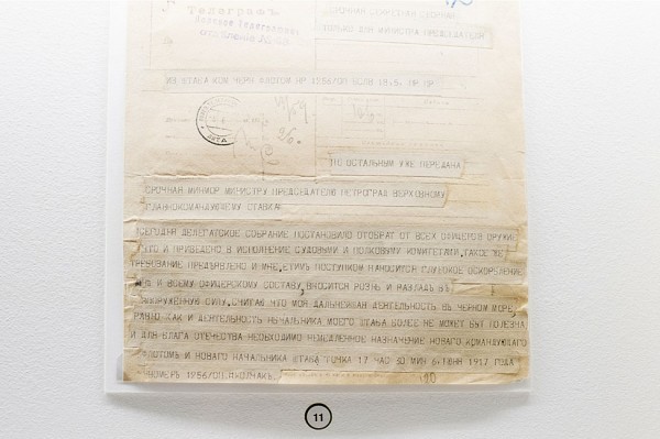 Телеграмма командующего Черноморским флотом вице-адмирала А.В. Колчака министру – председателю Временного правительства, 6 июня, 1917 года. Из текста телеграммы: «Сегодня делегатское собрание постановило отобрать от всех офицеров оружие… Такое же требование предъявлено и мне. Этим поступком наносится глубокое оскорбление мне и всему офицерскому составу… Считаю, что моя дальнейшая деятельность в Черном море… более не может быть полезна для блага отечества…»