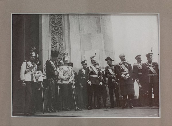 Великие князья у входа в храм Христа Спасителя в ожидании прибытия императорской семьи. 29 августа 1912