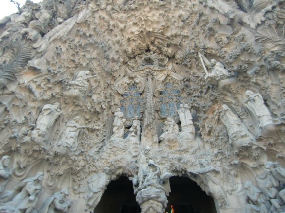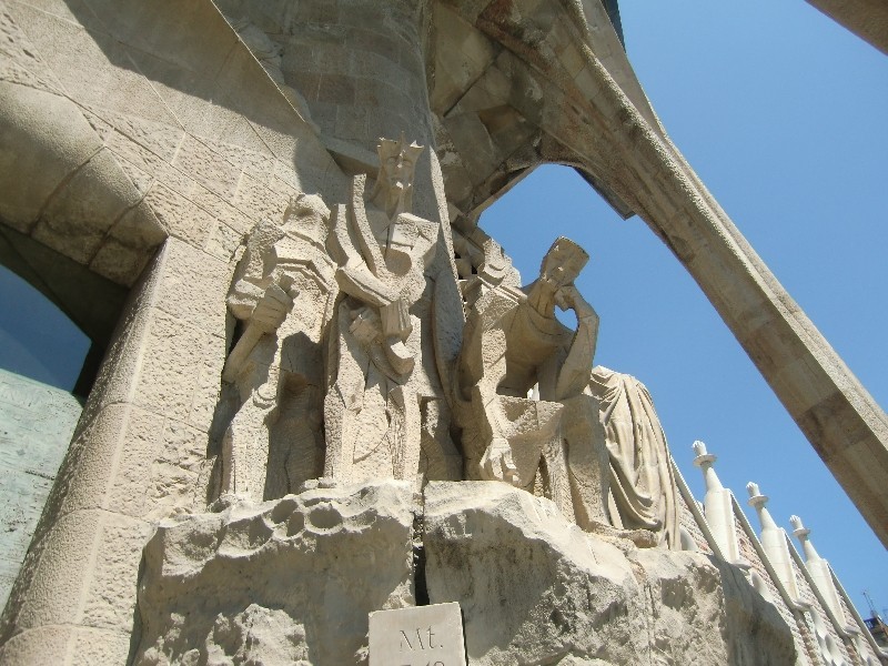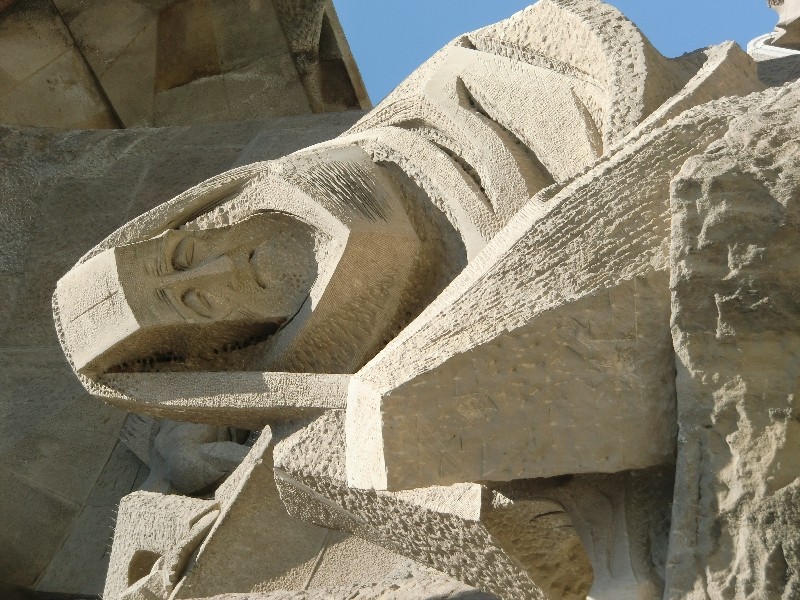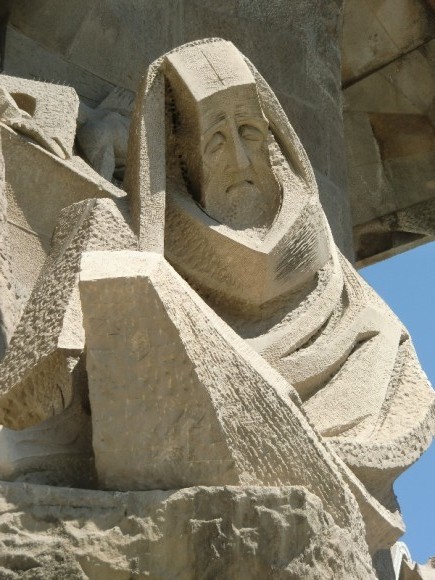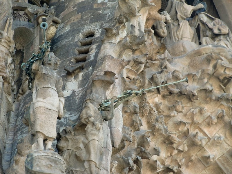 Фронтон, оставшийся от Гауди, несколько привычнее смотрится, чем то, что достраивают по его замыслам. Человек своего времени, он изобразил лица Священной истории максимально человечными, как людей из соседней булочной. Это обыватели, симпатичные и совсем не давящие на мозги пророческим горением. Продолжатели дела Гауди изобразили тех же героев демонами.