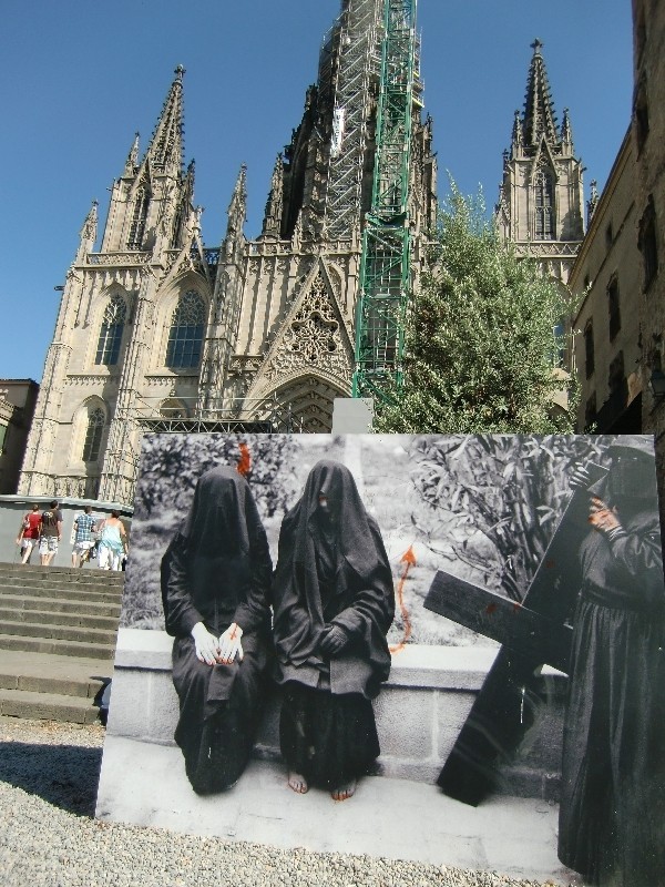 Католическая Испания благодарна Франко, но прячет свою благодарность подальше. Так, даже с площади в Толедо убрана табличка, извещавшая, что здесь генерал объявил себя каудильо. А перед фронтоном кафедрального собора Барселоны выставлены на поругание гигантские фотографии Франко и монахинь. Им пририсовывают рога, копыта и хвосты. Любой сорванец, любой обладатель краски может глумиться над смиренными пленниками времени. Вот они, дадзибао либерального общества, где гейпарады предписаны, а одежда религиозных людей запрещена — рога и хвосты у монахинь с закрытыми вуалями лицами.