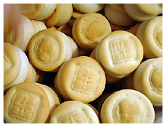 Теперь перейдем к заключительному этапу этой работы. Как только тесто подошло, подносы вынимают из расстоичного шкафа и начинают соединять верхние и нижние части просфор: нижняя часть смачивается водой, а верхняя накладывается на нижнюю. После этого каждую просфору прокалывают тонкой чистой спицей, чтобы внутри просфоры не образовывался воздух: маленькие просфоры прокалываются один раз, а служебные — 5-8 раз. Если этого не сделать, то просфора может потерять ровную форму, а её верхняя часть открепится от основания. Заготовки просфор ставятся на подносе в электрическую печь. Маленькие просфоры пекутся при температуре печи 200-220 С около 20-30 минут, а служебные — около 60 минут, или полтора часа при температуре 140 С. Окончательное время изготовления зависит от качества замеса теста, от того, как быстро и хорошо оно поднялось и от других особенностей. Просфора готова, если она полностью пропеклась, то есть внутри не осталось сырого теста. Когда просфоры приняли светло-жёлтый цвет или немного покрылись корочкой, их вынимают из печи, высыпают в деревянный ящик и накрывают несколькими сухими полотенцами и клеёночкой… Когда готовые просфоры остынут, их аккуратно раскладывают на подносе и относят в храм на Божественную Литургию… А на рабочем месте пекаря наводится порядок и чистота. После уборки прочитываются молитвы по завершении всякого доброго дела.