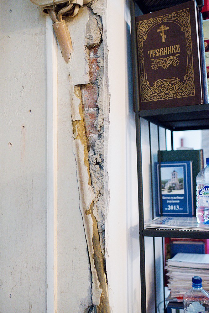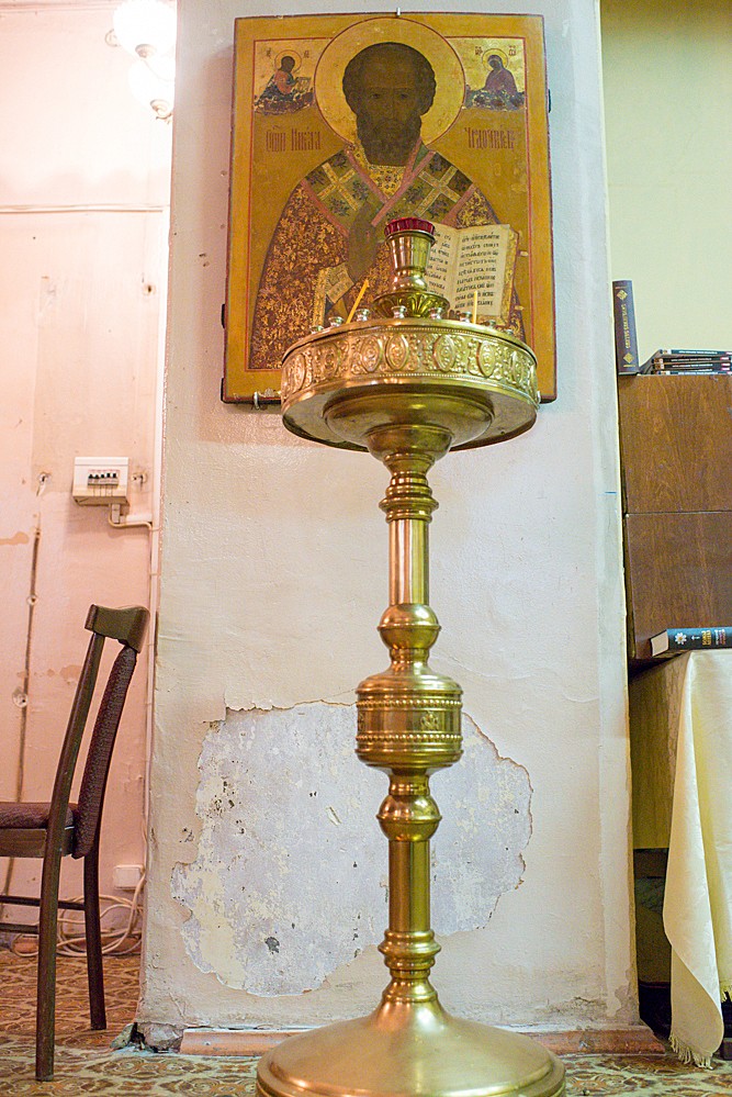 Храм Живоначальной Троицы при бывшей богадельне княгини Н.А. Черкасской расположен в самом начале Ленинградского проспекта недалеко от метро Белорусская Здание храма не видно с улицы, оно находится в глубине двора, за старинным зданием богадельни, где до сих пор расположена детская поликлиника Храм, расположенный почти в центре Москвы, находится в аварийном состоянии А ведет свою историю храм от 1853 года, когда вдова героя войны 1812 г. Николая Черкасского Надежда Черкасская (древний род Черкасских-Бековичей) приобрела на собственные средства загородную дачу у императорского архитектора Осипа Бове Вход в крипту храма, где захоронены князья Черкасские Протоиерей Андрей Юревич, нынешний настоятель храма Живоначальной Троицы Храм, построенный в 1856 г., был подчинен Троице-Сергиевой Лавре и окормлялся ее братией В богадельне, созданной при храме, неимущие женщины были на полном содержании и имели возможность посещать храм После смерти вдовы Черкасской богадельню взял на свое обеспечение купец Николай Спиридонов, чья могила находится в той же крипте Троицкой церкви Он жертвовал собственные средства на содержание богадельни и храма. Сегодня же храм находится в плачевном состоянии Штукатурка отваливается, стены до сих пор покрыты желтой больничной краской Старые стены Пол, покрытый старым больничным линолеумом, вздулся Потолок протекает, и стены постоянно мокнут После Октябрьской революции богадельня и храм были закрыты, и в их помещении расположилась Детская инфекционная больница. В алтаре находился ренгенкабинет, по соседству, как правило в таких случаях, туалет Еще несколько месяцев назад таких больничных раковин в храме было шесть! В начале 2000 годов помещение храма было передано Православной Церкви И своими силами приход начал ремонт храма Сохранилась живопись начала ХХ века Сохранились старинные чертежи богадельни (архитектор Машков)… …и даже чертеж храма, на котором видна каменная паперть со снесенной в советское время звонницей (архитектор П. П. Зыков) Сегодня звонницы нет, и люди поднимаются в храм по таким ступеням Уже 10 лет в храме постоянно совершается Божественная литургия Сегодня храм полон людьми: детьми… …и молодежью,… …и пожилыми прихожанами На каждой службе звучит проповедь Поет хор из прихожан И не мешает оголившаяся проводка, … …осыпавшиеся стены Отец Андрей заботится, чтобы всем в храме было удобно, особенно пожилым и многодетным семьям, детишкам и их родителям В храме для них организован маленький детский уголок Для прихожан настоятель завел три тетрадки: «Просьбы о помощи», «Я могу помочь» и «Вопросы батюшке» Храм живет молитвой Евхаристия Старое и новое На Божественной литургии Единственная старинная икона — Свт. Николая Чудотворца Отец Андрей приглашает в храм всех: «Приходите, храм ждет вас! Но храм нуждается в вашей помощи» Вход на территорию храма со стороны Ленинградского проспекта ПрихожанеНастоятель храма протоиерей Андрей Юревич и прихожане храма просят помочь восстановить разрушающуюся церковь: