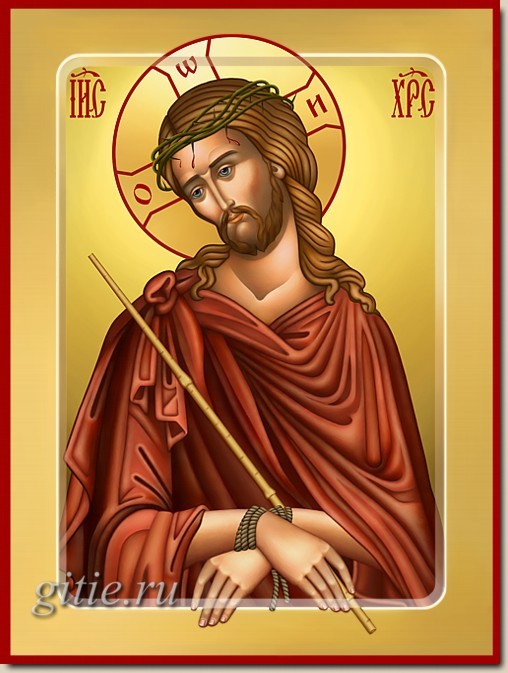 Христос пришел к Своим, и Свои не приняли Его. В последние часы Его жизни с ним играли в жестокую солдатскую игру — «угадай, кто тебя ударил сейчас!» Глаза Его были залиты потокам крови от ран тернового венца — твердого, как сталь, а все тело — изранено страшными ударами бича.