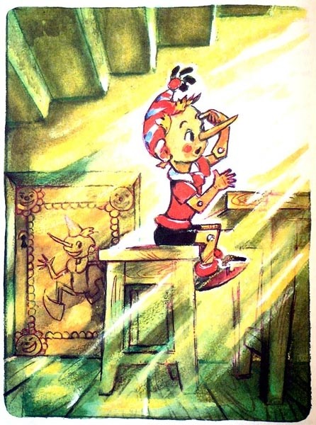 Самое высокой радостью для меня было, когда я сам одновременно стал писать и рисовать. Написал и проиллюстрировал две сказки «Буратино ищет клад» и «Буратино в Изумрудном городе». Мне помогала жена – мой критик и советчик. И наш песик Тяпа помогал, он хвостиком вилял.