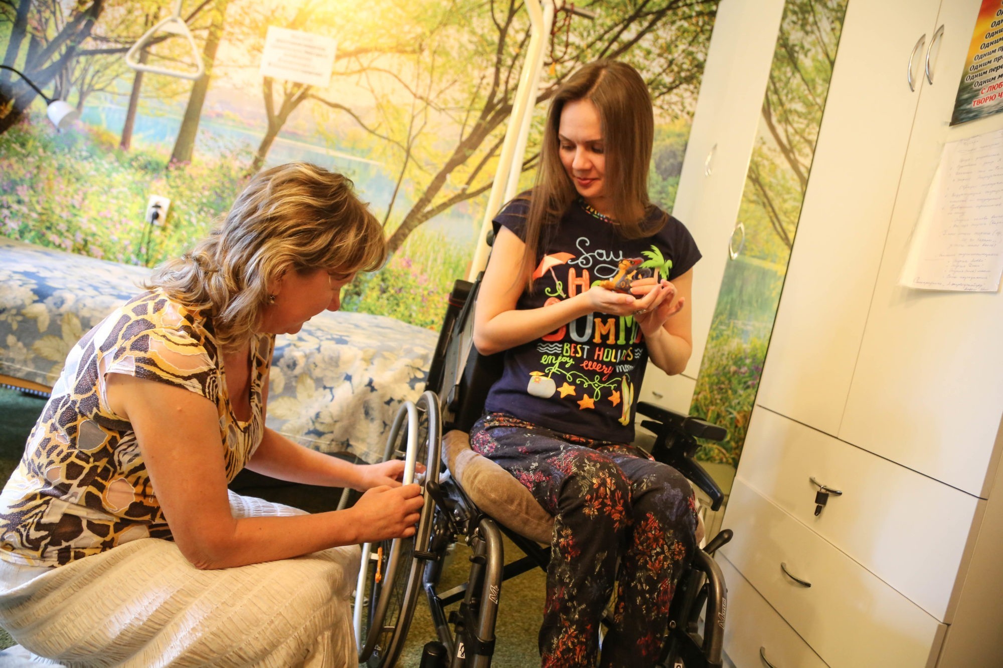 – Важно, чтобы эта ее твердость в принятии решения никуда не ушла. Не знаю, откуда это у нее – огромное желание встать на ноги и быть красивой. Не любит расслабляться в этом плане. Мама – ее большая духовная опора сейчас. Моменты отчаяния нас одолевали, но мы не акцентировали на этом внимание, некогда. Просто жили, и всё. Привезли на реанимобиле домой из другого региона. А тут ничего не приспособлено. Потом двери, проходы, подход в ванную комнату делали так, чтобы проходила коляска. Настояли на том, чтобы в подъезде организовали нормальный пандус.