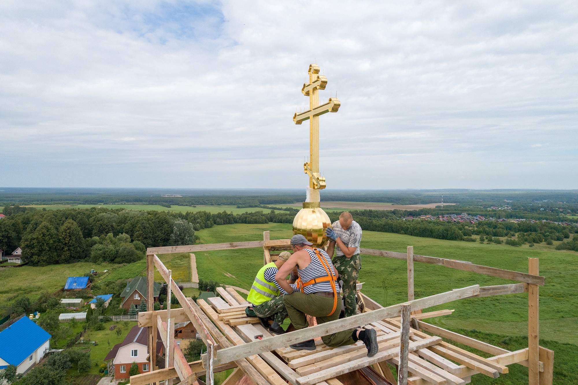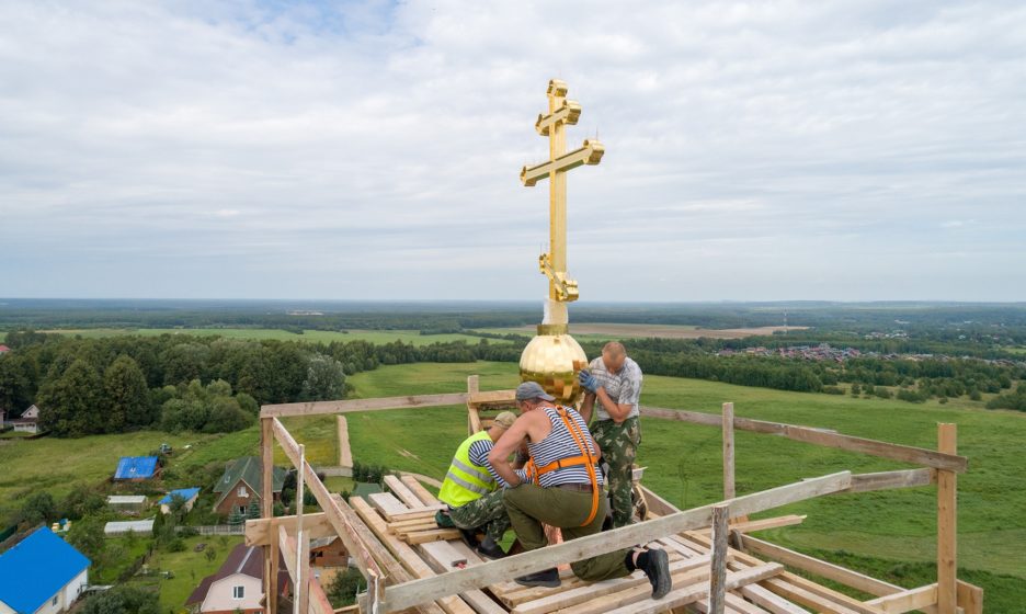 Установка креста на колокольню храма в честь иконы Божией Матери «Всех скорбящих Радость» в селе Пересветово 13 августа. Фото: mepar.ru