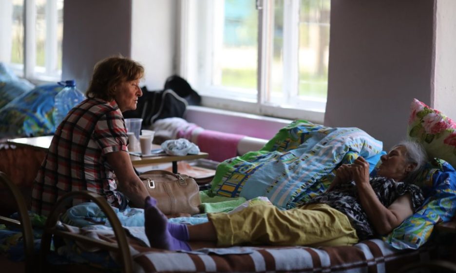Марина вчера после 50 часов работы впервые позволила себе поспать. После эвакуации они с мужем остались работать в пункте оказания срочной гуманитарной помощи.