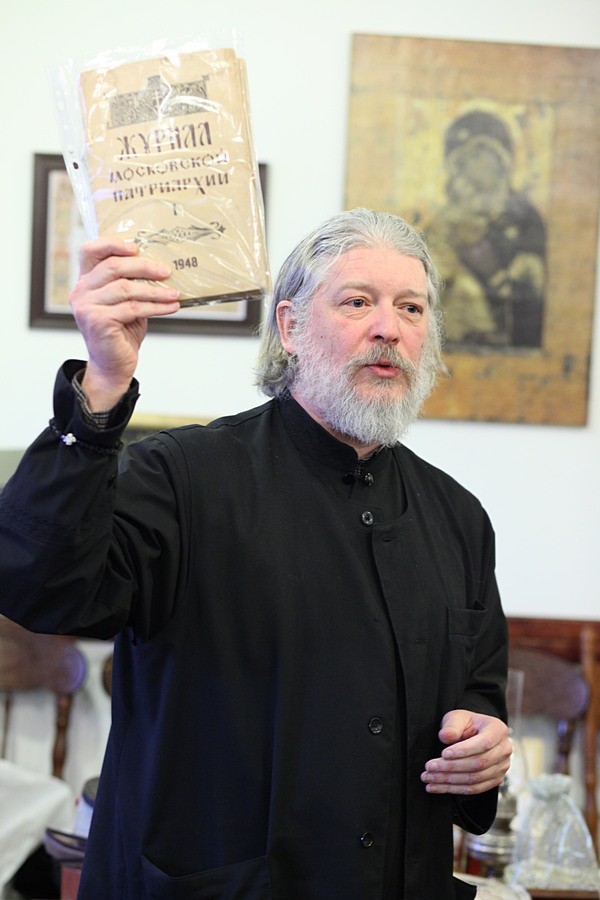 Наш прихожанин Леонид Вайнтрауб, искусствовед, знаток старой Москвы, принес из своей коллекции журналы «Московской Патриархии» 1941, 1948 и 1959 годов. Сергей Чапнин, ответственный редактор «Журнала Московской Патриархии» рассказал собравшимся об этих уникальных журналах, об истории Церкви в этот период.