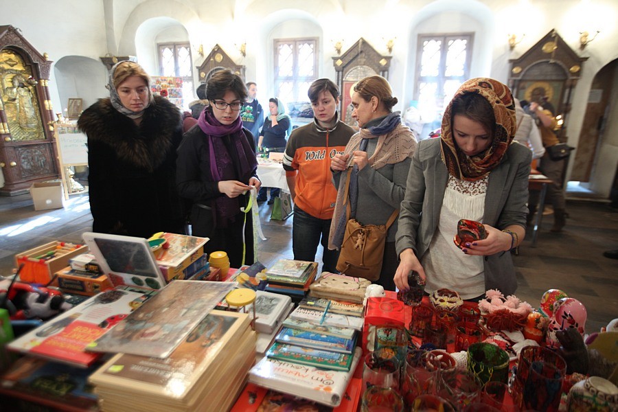 «Мы решили, что такая ярмарка – хороший повод для того, чтобы научить детей жить в Церкви, говорит Ксения Шляпина, прихожанка храма Успения Пресвятой Богородицы в Газетном переулке, преподаватель воскресной школы — Не просто на словах рассказывать им про Закон Божий, про христианство, а показать, как можно реально участвовать в общецерковной жизни, сделать какое-то доброе дело.