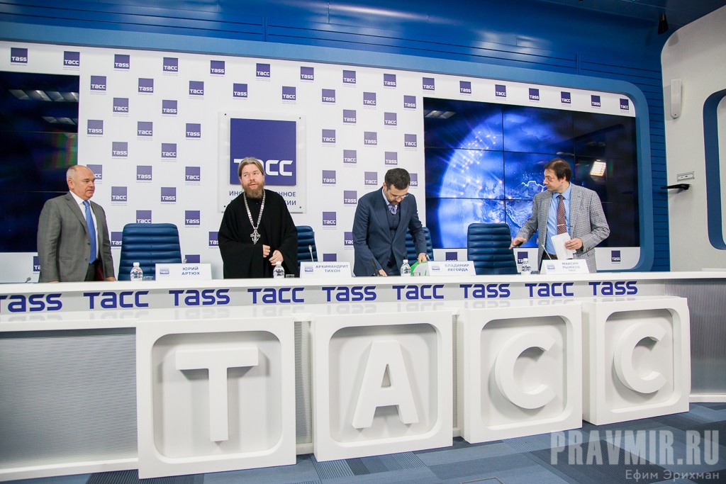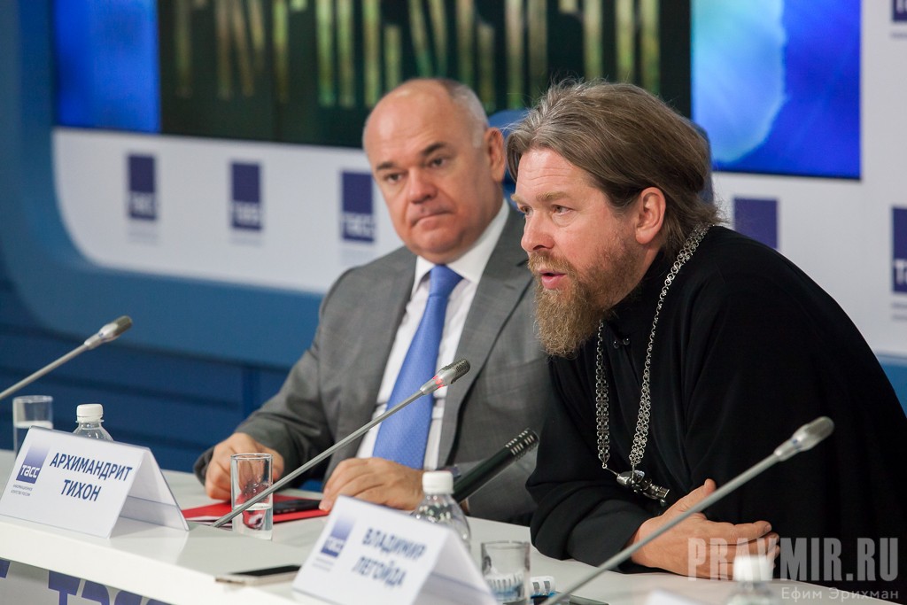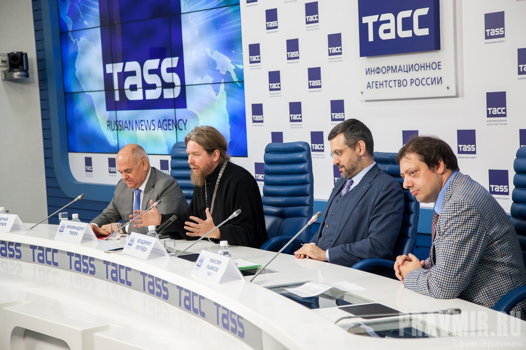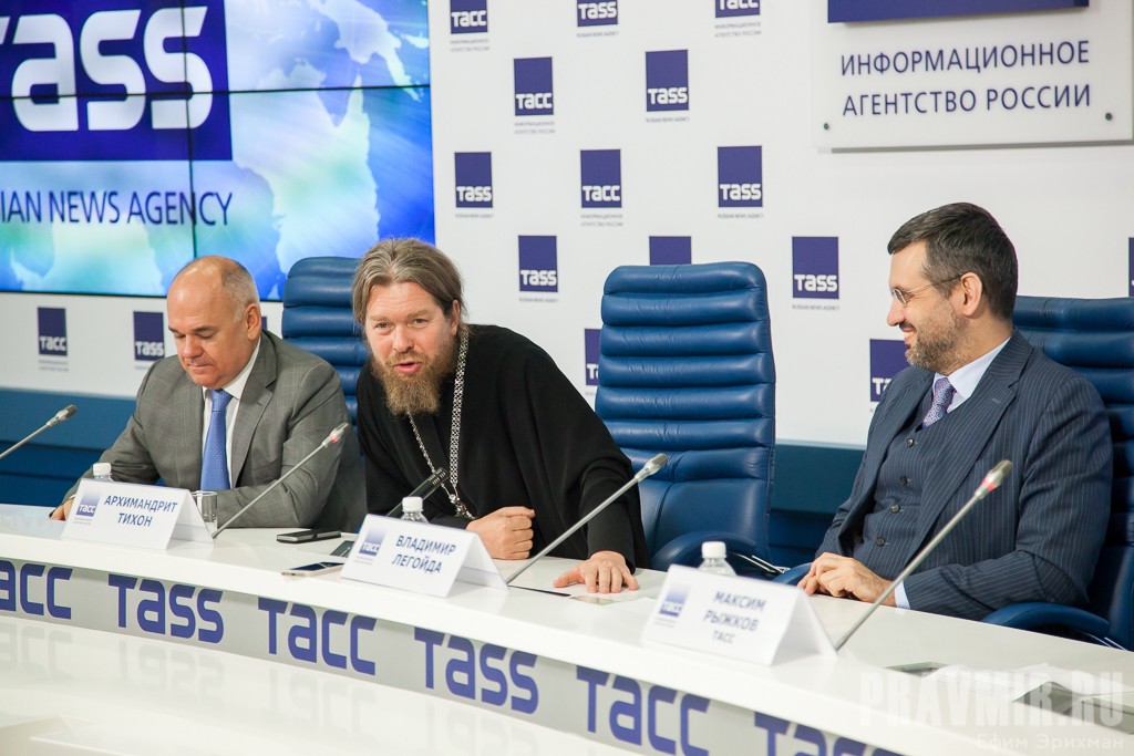 В пресс-конференции приняли участие: Архимандрит Тихон (Шевкунов), ответственный секретарь Патриаршего совета по культуре, Владимир Легойда, председатель Синодального информационного отдела Московского Патриархата, Юрий Артюх, руководитель Департамента межрегионального сотрудничества, национальной политики и связей с религиозными организациями города Москвы.