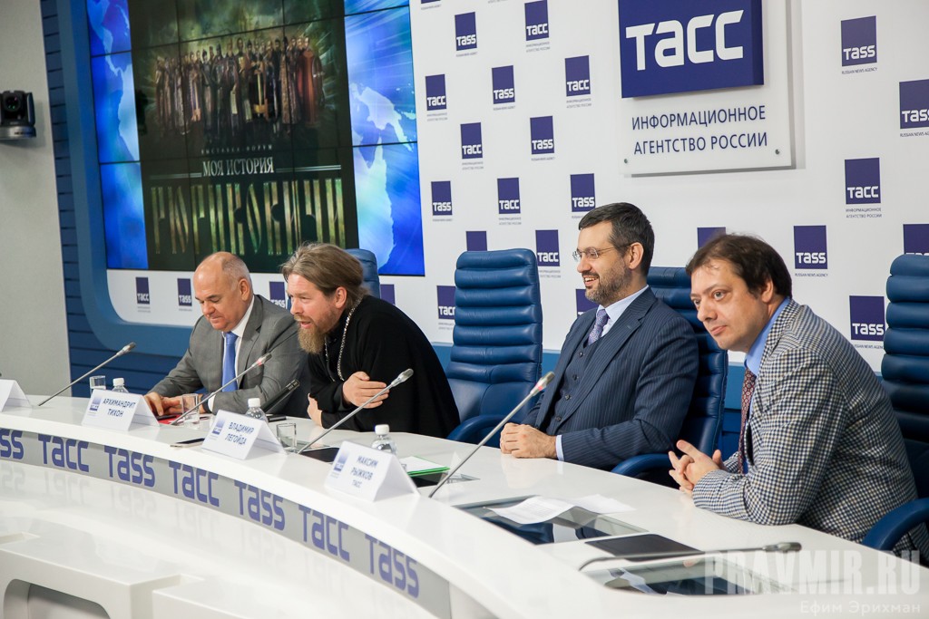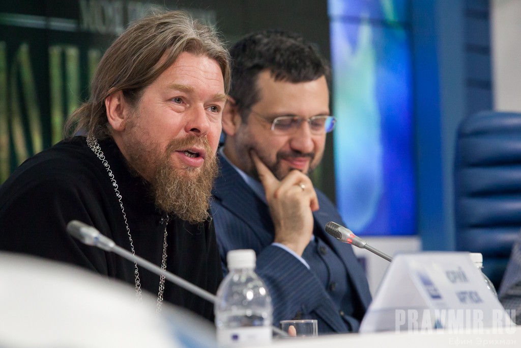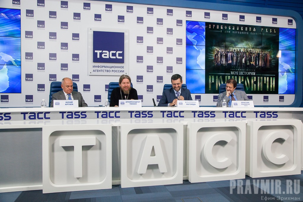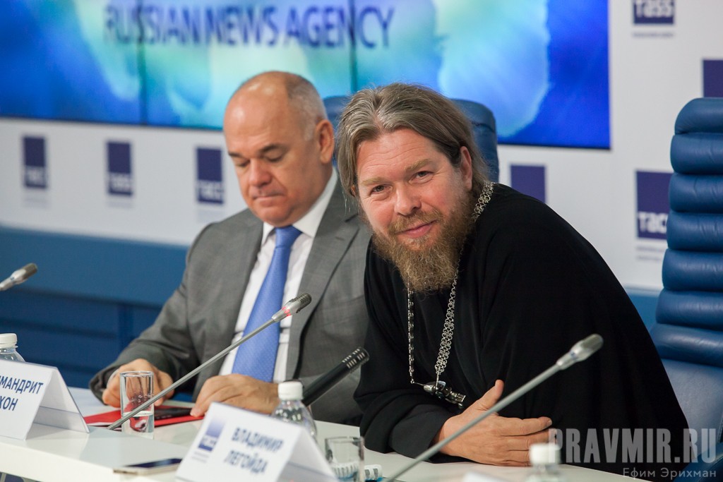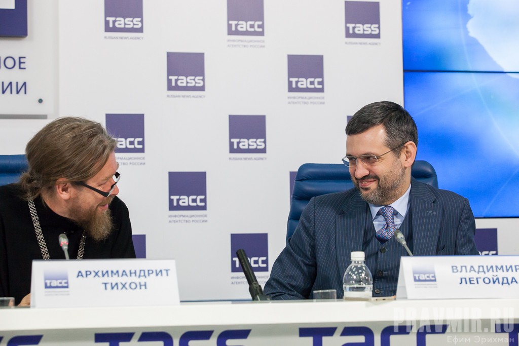 В пресс-конференции приняли участие: Архимандрит Тихон (Шевкунов), ответственный секретарь Патриаршего совета по культуре, Владимир Легойда, председатель Синодального информационного отдела Московского Патриархата, Юрий Артюх, руководитель Департамента межрегионального сотрудничества, национальной политики и связей с религиозными организациями города Москвы.