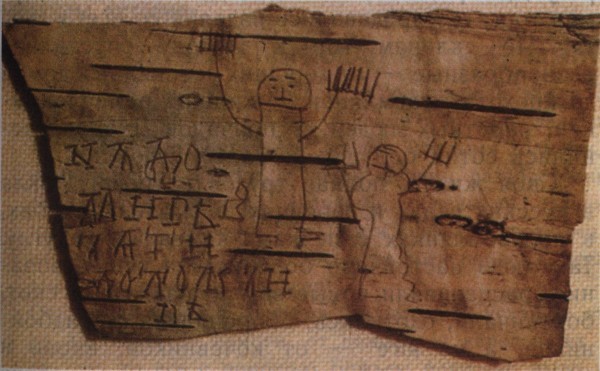 Грамоты 199-210 и 331 – прописи и рисунки новгородского мальчика Онфима, который жил в XIII веке.