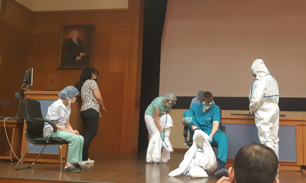 Надеть костюм — это же все ерунда. Правильно его снять, вот в чем проблема, потому что заразиться можно, не тогда, когда одеваешь костюм, а когда его снимаешь.
