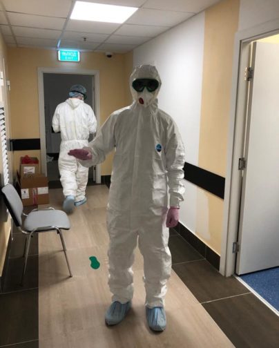 На пятом курсе в медицинской академии нам показывали эти противочумные костюмы, а мы смеялись: «Да ладно, никогда не пригодится это все». Вот бац, и пригодилось. У нас был экзамен по инфекционным болезням, я его с первого раза сдал. И когда уже сейчас этот костюм надевал, то все вспомнил и как снимать, и как выворачивать.