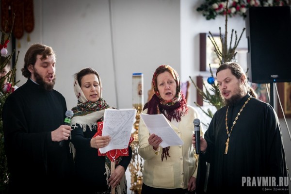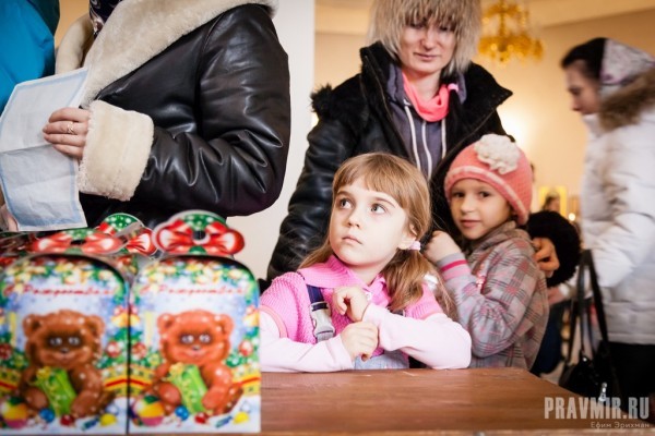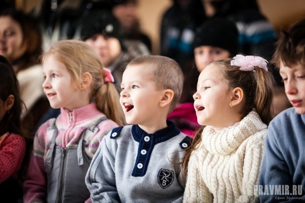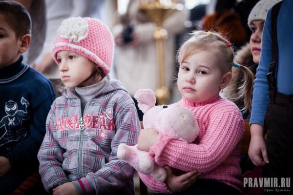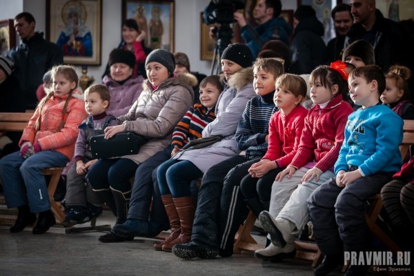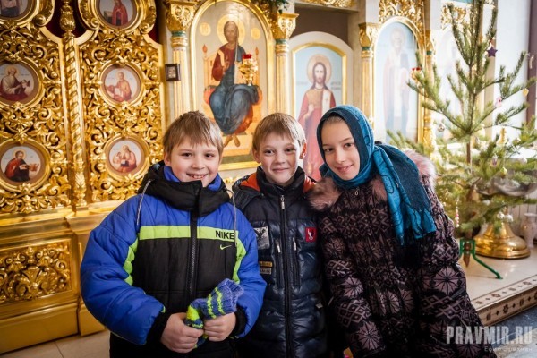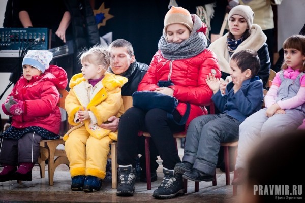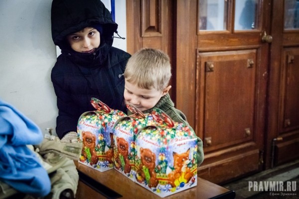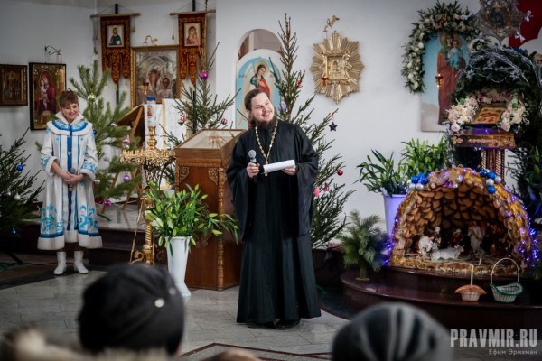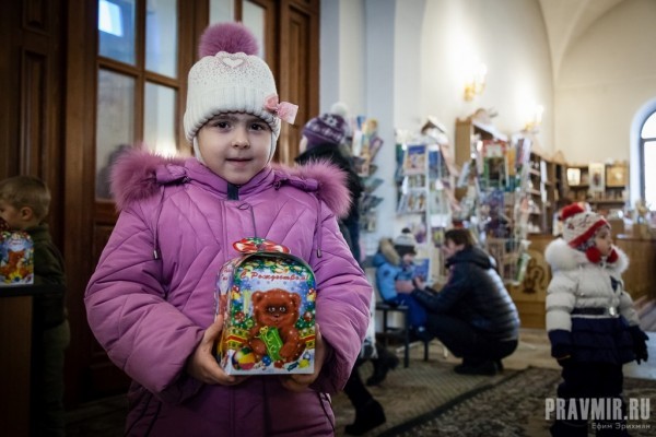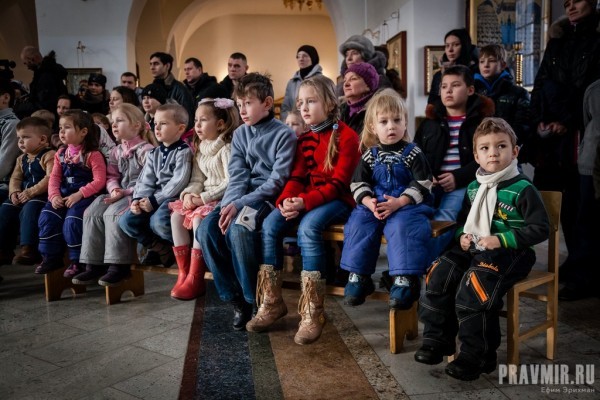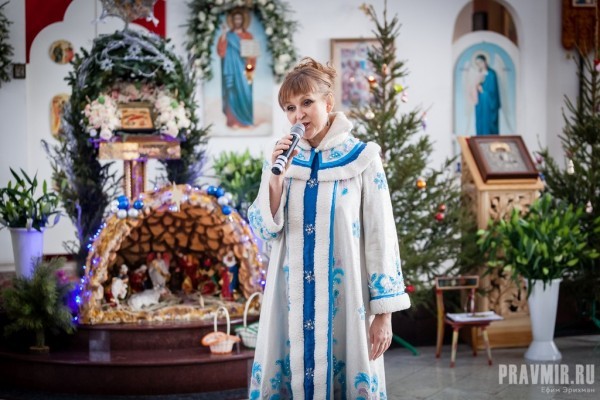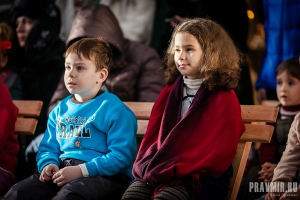 Подарки, конкурсы, загадки, выставка, иллюстрирующая события Рождества Христова, а также спектакль у рождественского вертепа — елка проходила в храме. Полукругом, на низеньких скамейках расселись дети – в основном малыши от трех до семи лет.