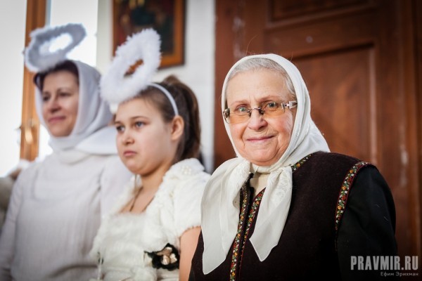 Детей ждало путешествие к вертепу вместе с персонажами рождественской истории: тут и ангелы, и Путеводная звезда, и волк, и ворон, и главные герои – две сестры: Машенька – умница и красавица и Марфушенька – ленивица и недотрога, конечно же.