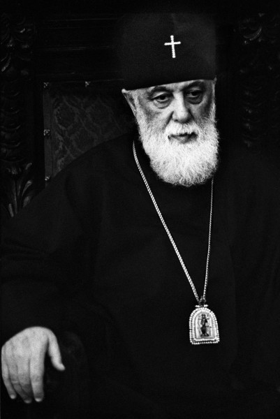 Ю.Рост: У меня с годами очень сложно. Это был, по-моему, первый год его интронизации, первая его служба была в Алаверде. Я залез на хоры, церковь пустая, огромный храм, красивый, грузинский, и сделал эту фотографию, где он маленький, его не видно, а храм большой. Тогда мы с ним не встретились, потому что он отслужил и уехал. А мы поехали праздновать дальше. Через некоторое время Гоги Карабадзе, Миша Чавчавадзе – замечательный художник — стали друзьями Патриарха.