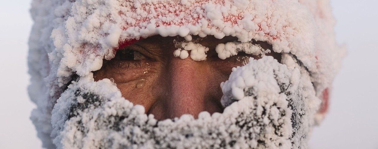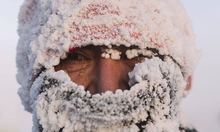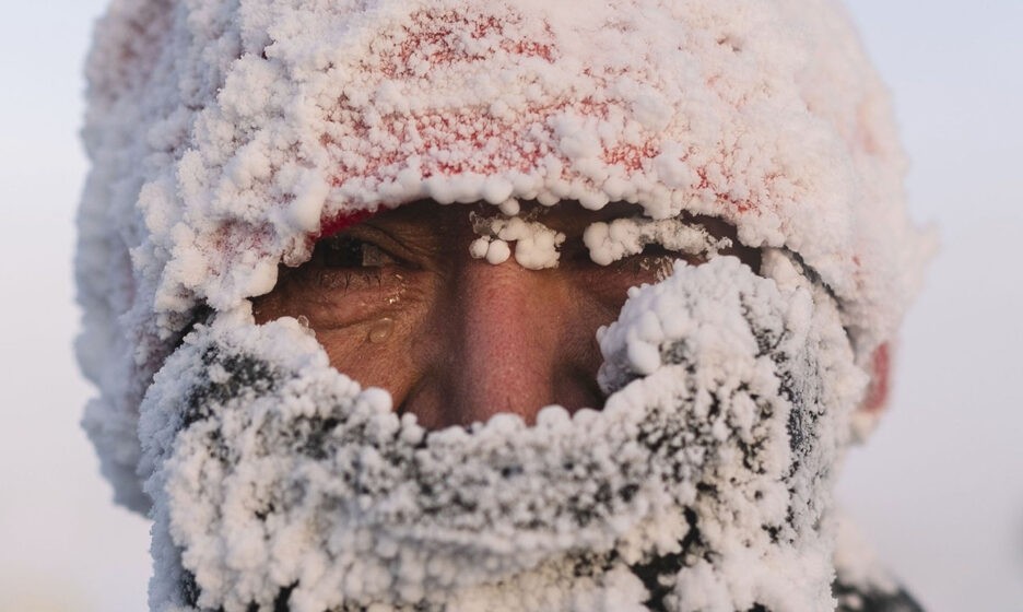 Бегун после участия в самом холодном марафоне в мире при -53 градусах недалеко от Оймякона, Республика Саха. 65 бегунов, в том числе спортсмены из Объединенных Арабских Эмиратов, США и Беларуси, стартовали в условиях экстремально низких температур в якутском полюсе холода. Интернациональная команда мужчин и женщин пробежала полную дистанцию и полумарафон. 22 января 2022 года. Фото: Ivan Nikiforov / AP Photo