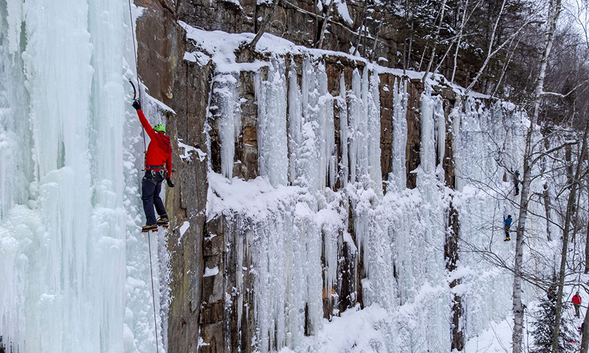 Альпинисты на каменной стене, покрытой ледяными столбами, во время Фестиваля ледолазания в ледовом парке Робинсон в Сэндстоуне, штат Миннесота (США). 8 января 2022 года. Фото: KEREM YUCEL / AFP / Getty Images