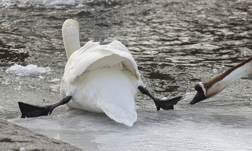 Лебедь на замерзшем пруду в парке Кугулу. Ночью температура воздуха упала до -8 градусов. Анкара, Турция. 21 января 2022 года. Фото: Guven Yilmaz / Anadolu Agency / Getty Images