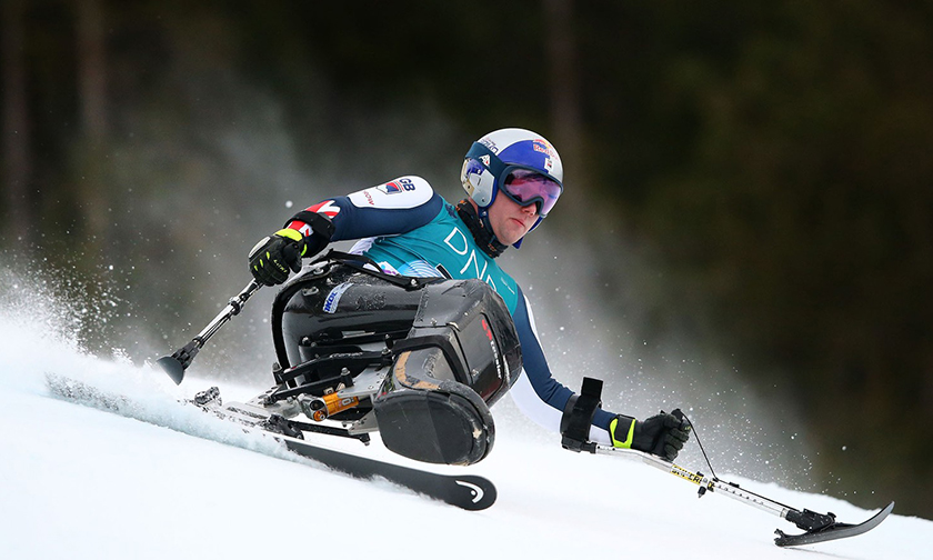 Алекс Слегг из Великобритании на соревнованиях по гигантскому слалому. Чемпионат мира по паралимпийским видам спорта в Хафьеле (Норвегия). 19 января 2022 года. Фото: Alex Livesey / Getty Images