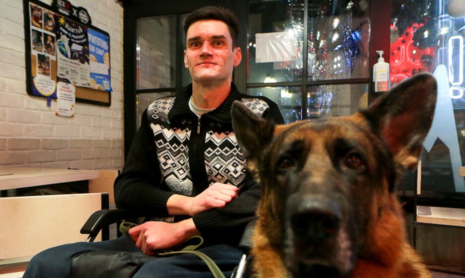 17 лет назад Максим попал в аварию и с тех пор передвигается на коляске. Он создает и продвигает сайты крупных компаний. Четыре года назад он решил завести собаку.