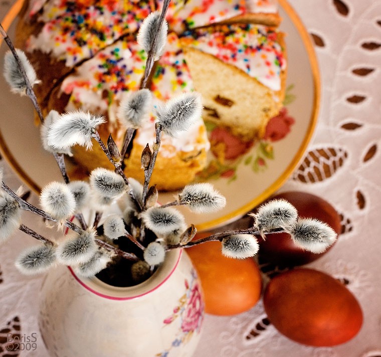 Но мне кажется, для церковного человека, как-то это очень естественно – чтобы моя еда, тем более, в день пасхальный, стала бы не просто моим личным делом: вот я бутербродик с сыром сейчас съем, наконец-то! — а чтобы она стала, чем-то соединяющим меня с тем, что я как христианин считаю, самой главной радостью и смыслом моей жизни, и с жизнью всей Церкви, которая вкушает именно эти яства в этот день на утро Пасхи.